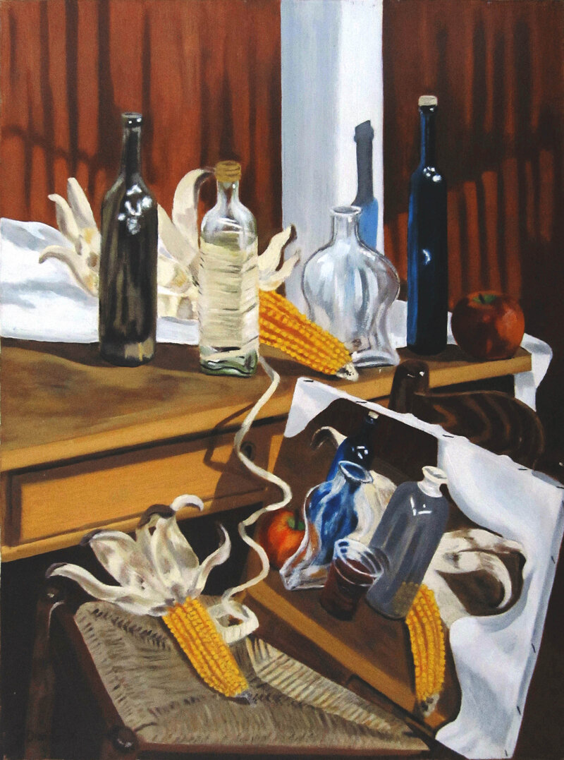 bottiglie-con-tela-dipinta-su-sedia